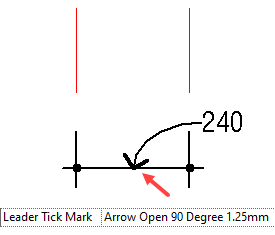 The first is the Witness Line Tick Mark, which is placed at the extremity of the witness line. This isn't used very often.